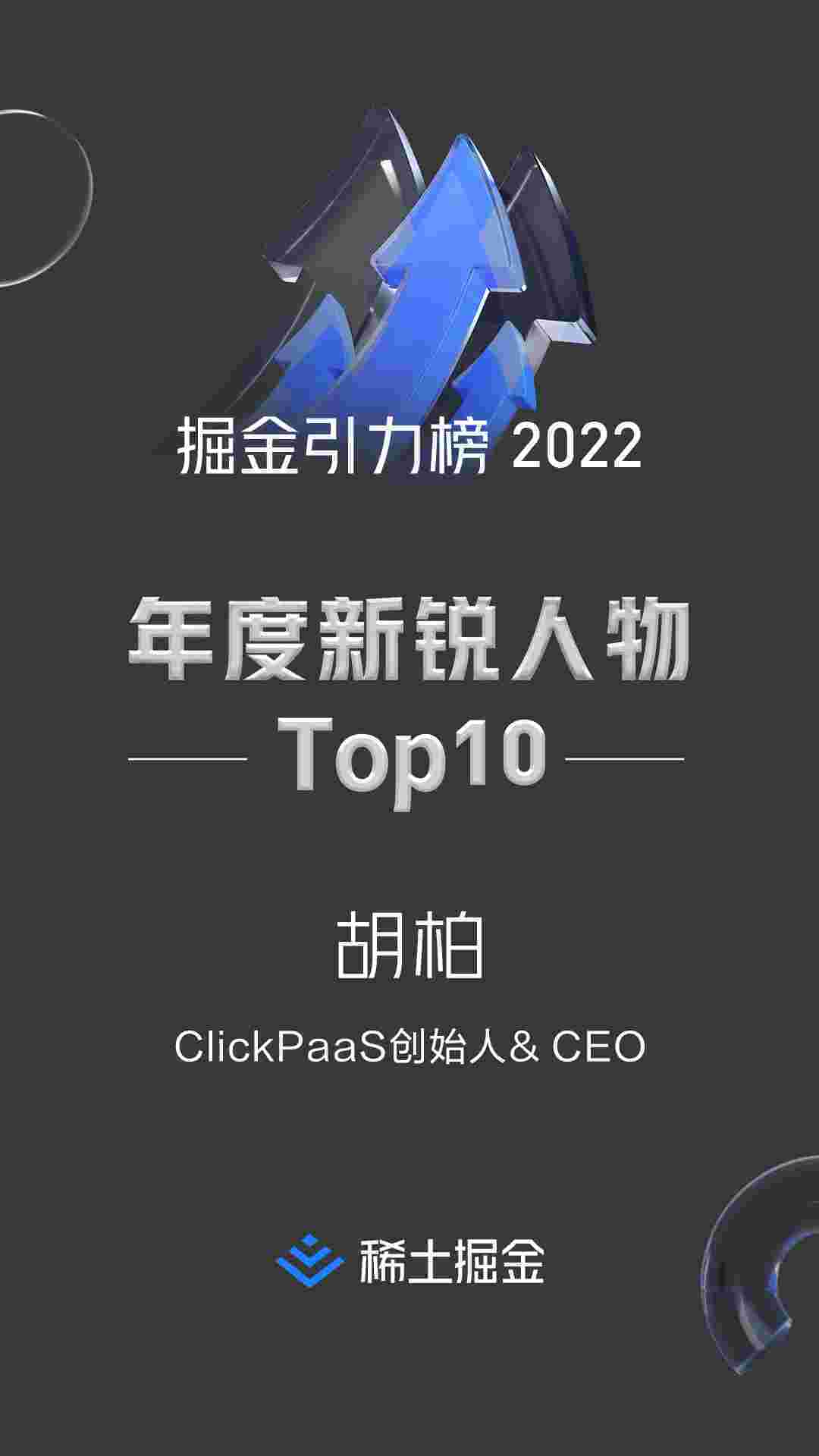 2022年1月6日,,,稀土掘金社区第一届「掘金未来大会」成功举办,,,,会上发布了“2022 稀土掘金引力榜 年度新锐人物”榜单,,上海爱湃斯科技有限公司(简称美团钱包商家版)创始人及CEO胡柏实力入选年度新锐人物TOP 10。。。。